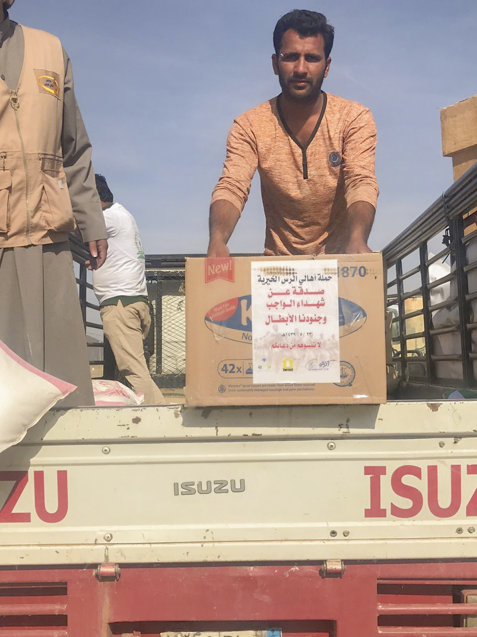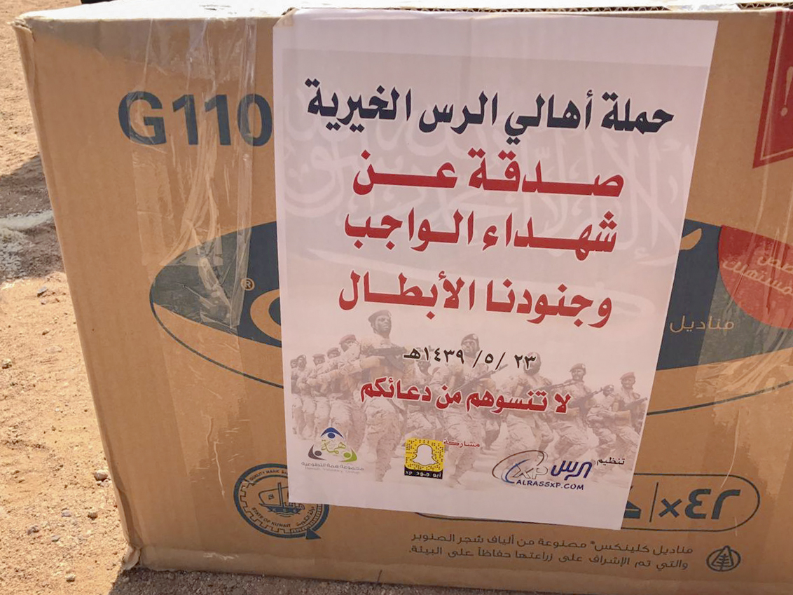 قامت الجمعيه الخيريه بمحافظه سميراء بالتعاون مع حمله اهالي الرس الخيريه بتوزيع صدقه عن شهداء الواجب وجنودنا الأبطال بتوزيع (50) سله غذائية من خمسه عشر صنف تم توزيعها على أيتام القرى والهجر المجاورة للجمعيه